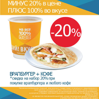 09 Фев СКИДКА 20% Posted at 15:16h in Акции, Все новости, Новости by tvernefteproduct Share СКИДКА 20% С 1 февраля по 31 апреля 2026 года акция на АЗС «Сургутнефтегаз» Тверской области при покупке любого кофейного напитка и Врапбургера скидка на набор 20%.